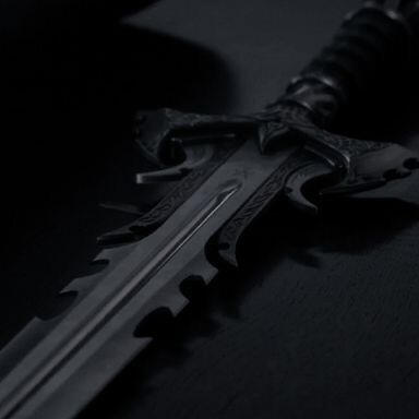 A darkened blade forged from Draconic steel and Wyrmscale alloy, its surface gleaming with an ominous, ethereal sheen. Adorned with crow's feathers at the hilt, the sword is inscribed with ancient runes that pulse with a faint mist, carrying the echoes of death's power.Can you hear it?